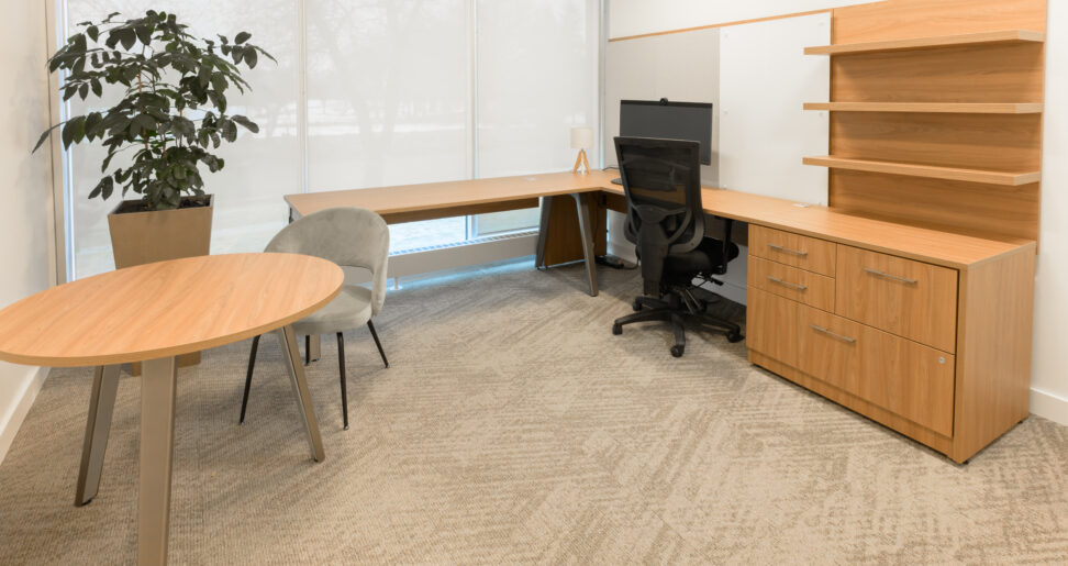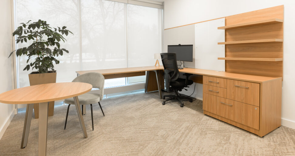 CCL, a financial services organization, was undergoing a full renovation of their workplace to reflect a more modern, elevated standard. After more than a decade with the same desks and layout, the goal was to reimagine the space into an environment that felt warm, welcoming, and highly functional, while aligning with the professionalism expected of their brand.