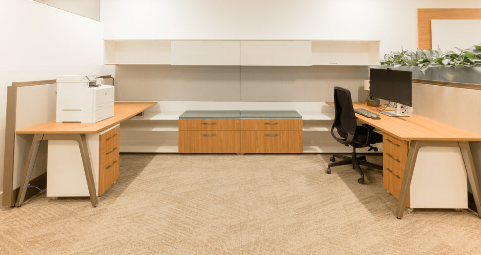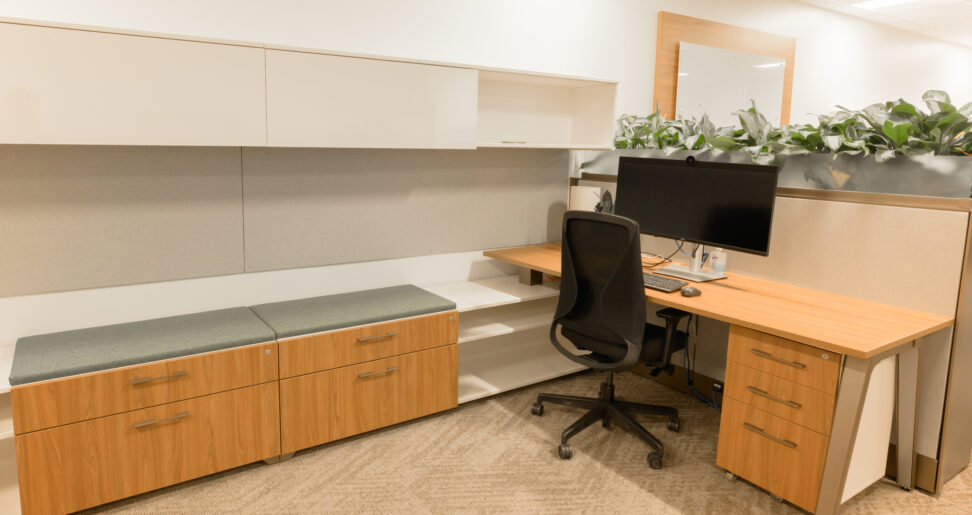 Adding to the complexity, the project incorporated existing panel frames from the client’s previous furniture installation. This required thoughtful integration of new solutions that could seamlessly align with legacy components while still delivering a cohesive, refreshed environment.