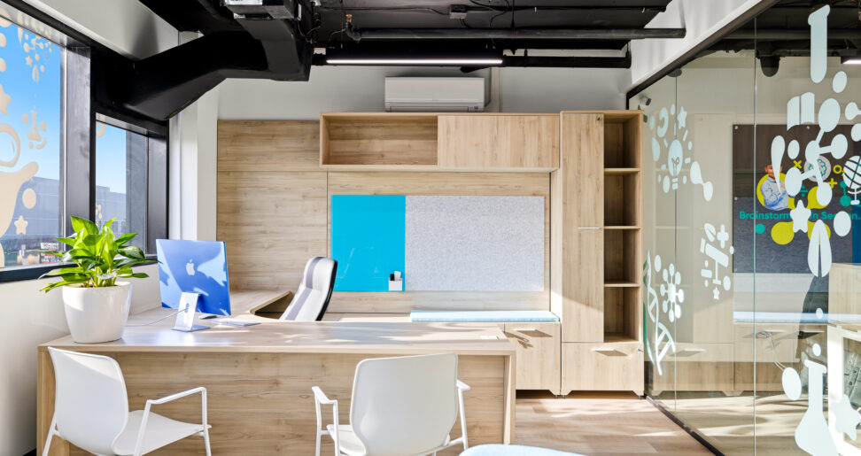 STEMstein Academy, an innovative educational organization focused on science, technology, engineering, and mathematics learning, was preparing to launch a new 3,000 sq. ft. facility. As a brand-new space, the project required a complete plan–design–build–furnish solution that would translate STEMstein’s bold brand identity into a physical environment while supporting modern, highly interactive learning styles.