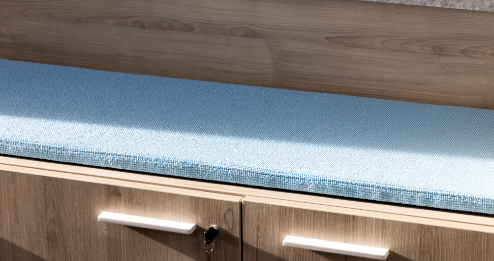 To ensure the offices remained organized and functional, Halifax storage solutions were integrated throughout the space. Halifax cabinet storage units, combination cabinets with integrated closets, and wall-mounted Halifax gallery hutches with sliding doors provide ample storage for teaching materials and equipment while maintaining a refined visual profile. Frost PET tackboards within the Halifax cabinetry introduce both functionality and subtle acoustic benefits, allowing educators to display schedules, learning materials, and project references within easy reach.