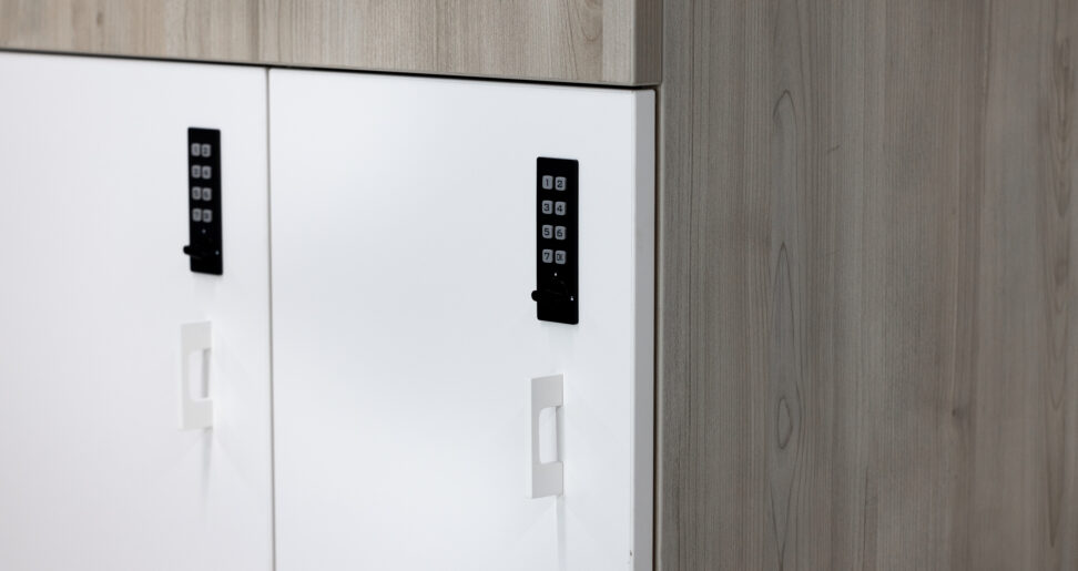 Additional elements support flexibility and comfort throughout the facility. Koko laptop tables in white metal allow educators and students to quickly move between focused work and collaborative engagement, while locker units with integrated planter boxes, finished in Sable Island melamine with white McKay handles, introduce practical storage alongside biophilic elements that soften the environment and enhance the learning atmosphere.
