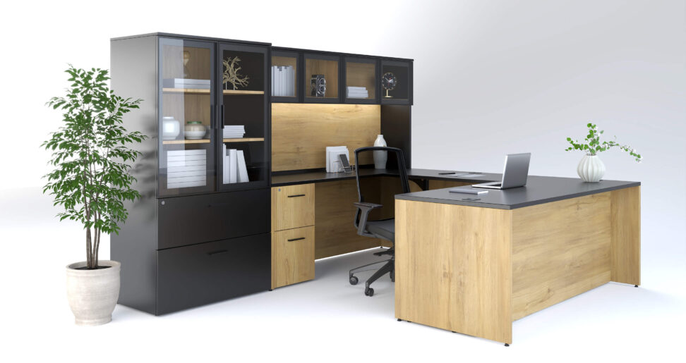Streamlined design with slim profiles and minimal hardware, creating a sophisticated and uncluttered workspace.